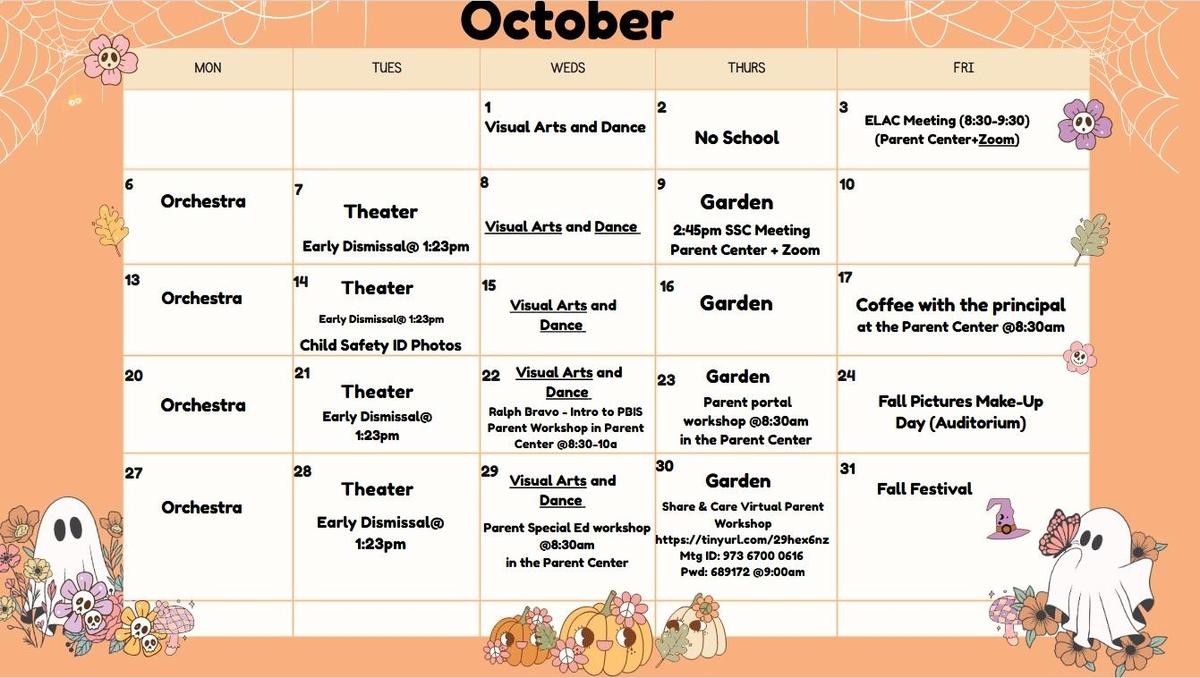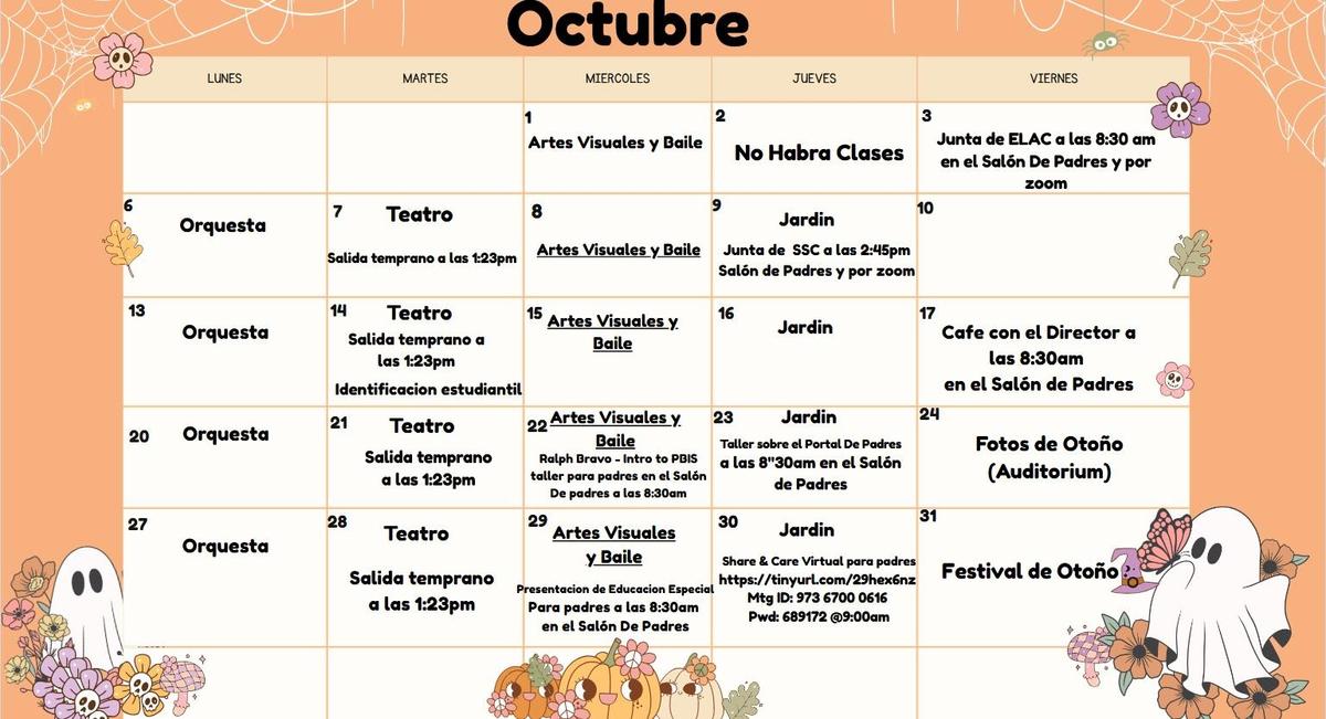 CALDENDAR FOR THE MONTH OF OCTOBER/ CALENDARIO DEL MES DE OCTUBRE Information for the month of October/ Información del mes de octubre