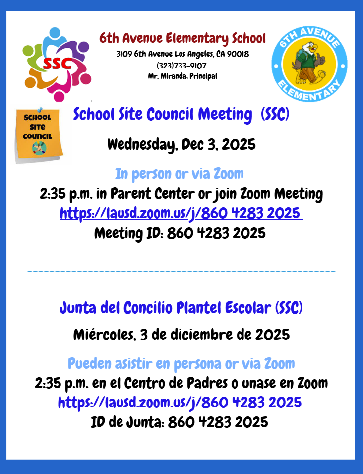 Zoom Meeting link: https://lausd.zoom.us/j/860 4283 2025